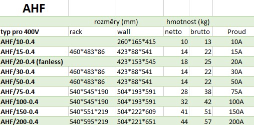1. Přehled nástěnných aktivních harmonických filtrů (AHF)